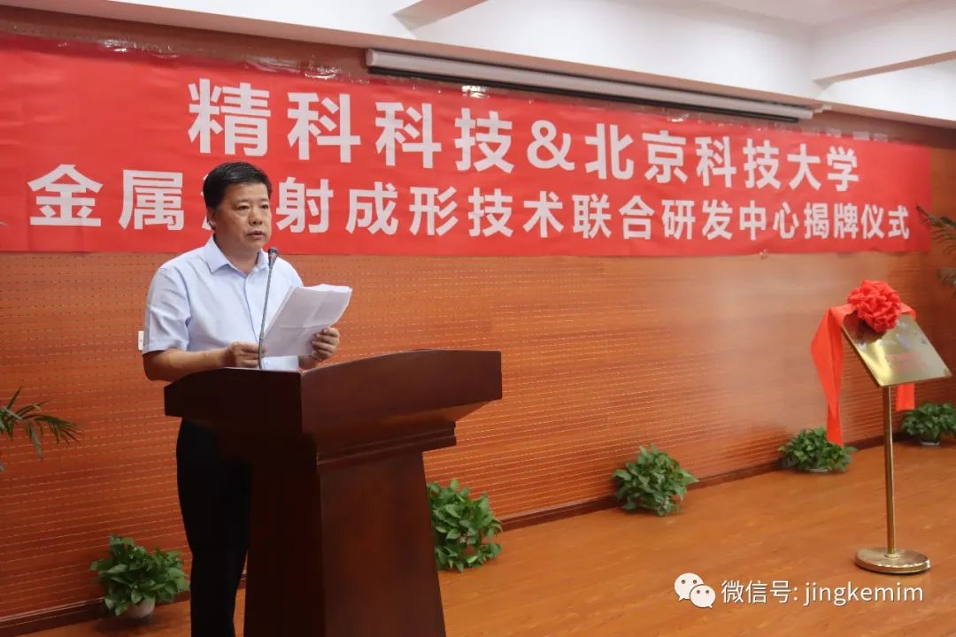 9月28日上午9:30,精科科技公司、北京科技大學(xué)金屬注射成形技術(shù)聯(lián)合研發(fā)中心揭牌儀式在嘉興精科科技有限公司舉行。這是國(guó)內(nèi)一流高校研發(fā)機(jī)構(gòu)對(duì)精科科技公司研發(fā)水平的充分認(rèn)可。北京科技大學(xué)曲選輝教授、精科科技總經(jīng)理黃云斌共同為聯(lián)合研發(fā)中心揭牌,嘉善開發(fā)區(qū)管委會(huì)副主任潘莉蘊(yùn)、北京科技大學(xué)科技處綜合辦公室郭紹瓊教授、北京科技大學(xué)陳剛副教授,精科技公司近50人參加了揭牌儀式。